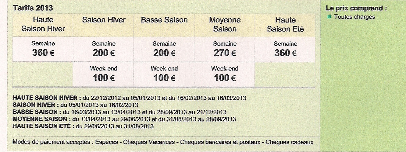 Les tarifs du "Gîte Le Nid" sont identiques aux tarifs du "Gîte du Hôo"
